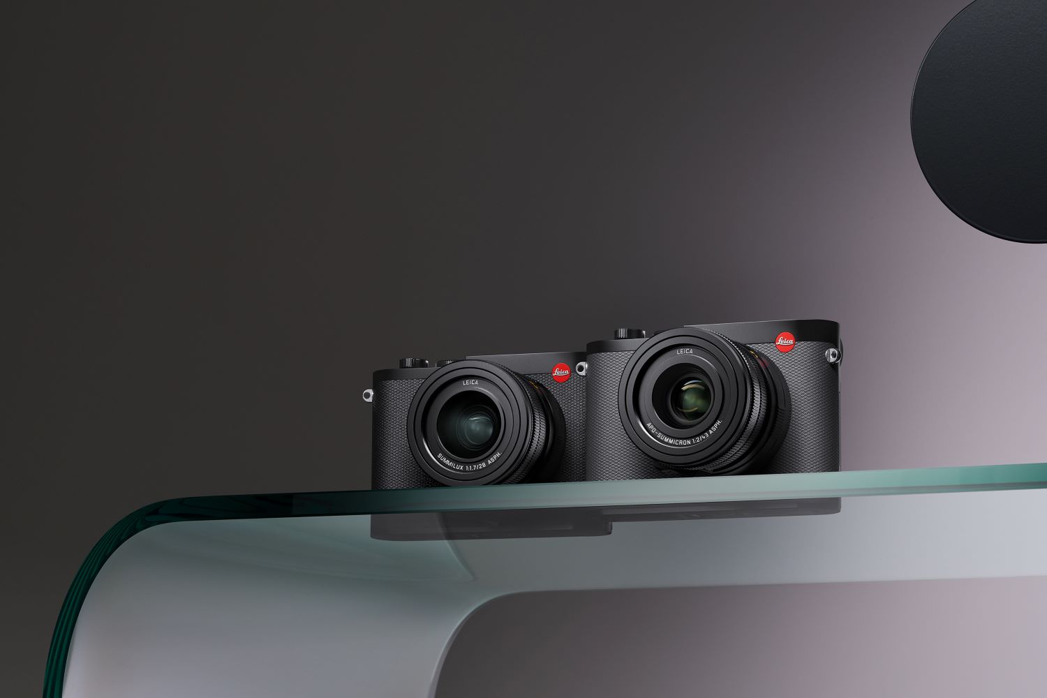 Den matsorte finish og elegante graveringer understreger kameraets minimalistiske monokrome design.