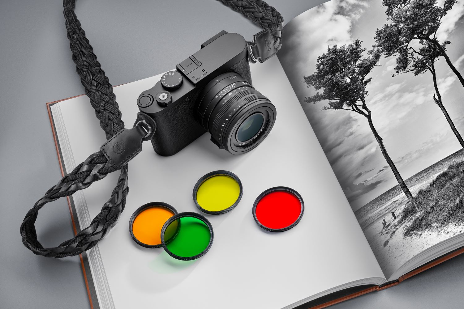 Q3-tilbehør er også kompatibelt med Q3 Monochrom. Du kan vælge et multifunktionshåndtag med trådløs opladning og matchende kunstlæderbetræk til kameraet sammen med farvefiltre i rød, grøn, gul og orange for at forbedre kontrasten. Hvad mere er, kan du personliggøre din Q3 Monochrom med stilfuldt tilbehør, herunder en rund flettet bærerem, der fås i en række designs.